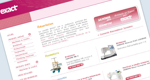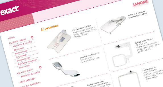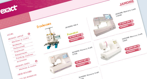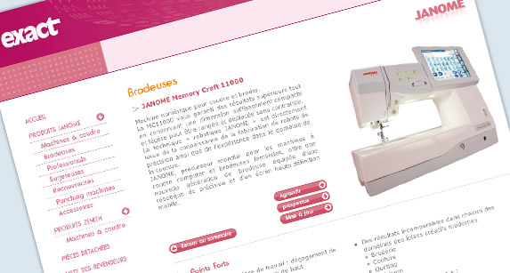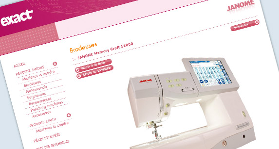 Site du distributeur et revendeur de machines à coudre. Mise en avant du catalogue produits, et liste des revendeurs.